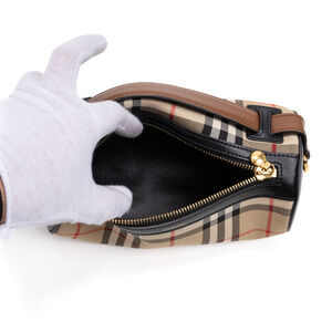 Burberry Handbag Barrel Bag Small in Beige/Black/Red Plaid Check Canvas and Gold hardware. The product is in Perfect Condition (AA).