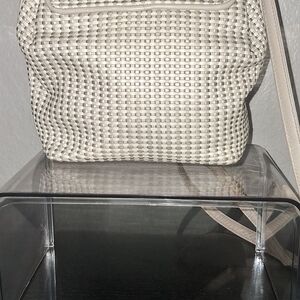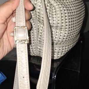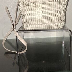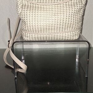 This chic cream woven backpack is a stylish choice for any outing. Its versatile design complements any wardrobe.