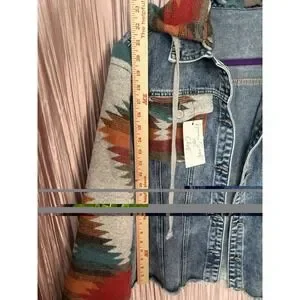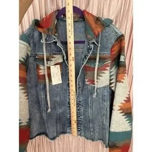 NWT Boho Aztec Blanket Sleeve Denim Jacket Hoodie Women's Size Large Modern