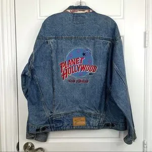 VINTAGE Planet Hollywood Las Vegas Unisex Jean Jacket Embroidered Logo