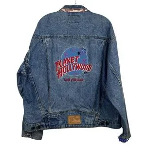VINTAGE Planet Hollywood Las Vegas Unisex Embroidered Jean Jacket Size XL