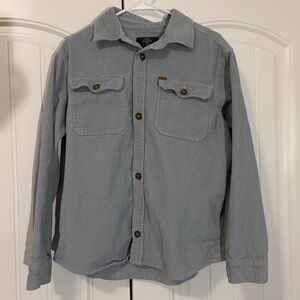 Light gray corduroy shirt with textured fabric. Features a classic collar and button-up design.