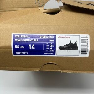 Mizuno Wave Momentum 3 Mens Volleyball Shoes Black V1GB231253 Size 14