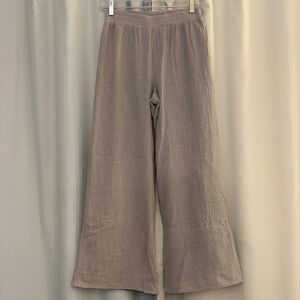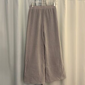 Comfortable wide-leg pants in a soft gray color. Perfect for casual wear.