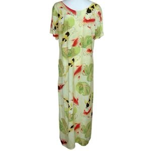 Vintage Jams World Maxi Koi Pond Fish Print Dress Hawaiian Womens Large W370-KOI