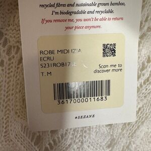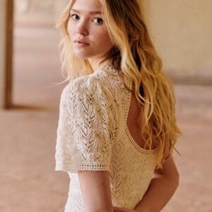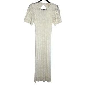 Sezane Izia Midi Dress NWT Size Medium Ecru White Pointelle Knit Open Back