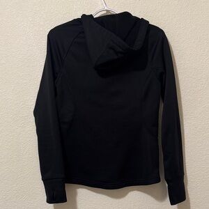 Sleek black utility jacket by Spyder. Features a full zip front and hood. Ideal for versatile wear.