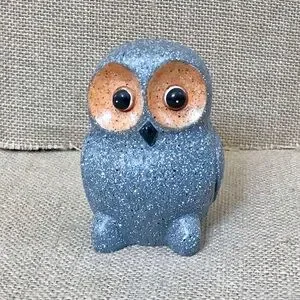 Speckled Gray Owl Figurine Kitsch Dark Academia Fairy Core Woodland Whimsical