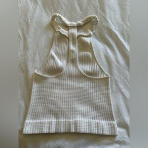 Really pretty white ribbed halter/bra top. Modern and fun style, I wore it as a bralette, great style to peek out under a tee. Not sheer, could wear as a crop top. Take a look to bundle.