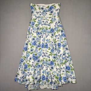 Lulus Sunday Lovin' White Floral Strapless Midi Dress Women’s Small Blue Spring