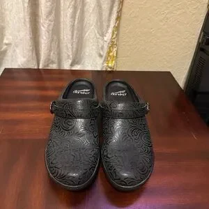 DANSKO XP Women's Black Leather Tooled Clogs Shoes Size EU 39/US 9