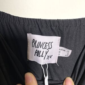 Princess Polly Adalee Midi Dress Black Women's Thigh Slit Size 8 Party Cocktail