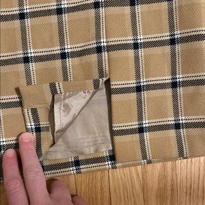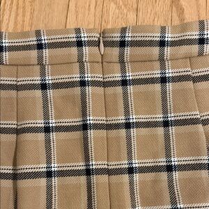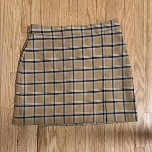 Cute beige and black with white detail Wilfred plaid mini skit. Has a sexy slit at the front and zip up back. Satin lining.