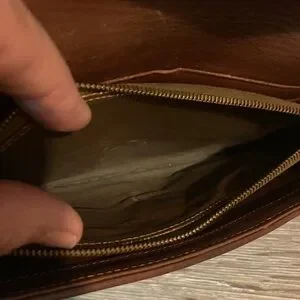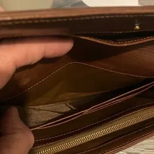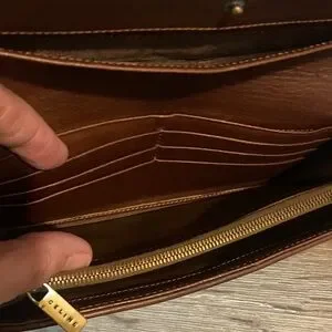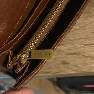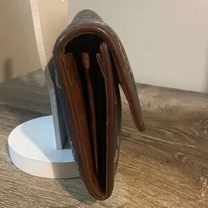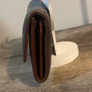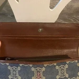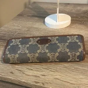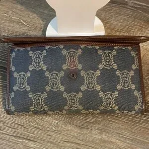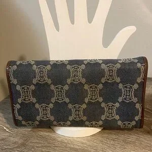 Celine Vintage Macadam Blue Denim Brown Leather Trim Wallet 7.25x4 EUC