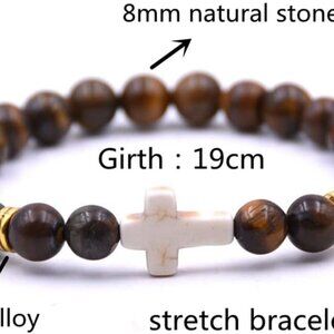 Features: Set of 10 beaded bracelets made from high-quality 8mm natural stone beads. Stretchy elastic design for a comfortable fit for women and men. Stylish and versatile, perfect for stacking or wearing solo. Each bracelet features a smooth, shiny stone bead with a meaningful cross accent.
