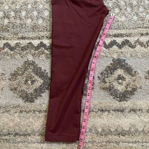 Excellent condition. No noticeable flaws or damages or stains. Size 6. Can’t tell if color is deep lux or redwood. Full-on Luon material. Inseam measurement photo provided.