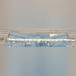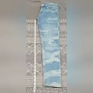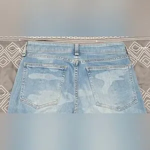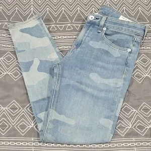 Great condition. Size 25. Faded camo. Midrise. Ankle skinny style. White hardware. Measurements and fabric content listed above in pictures.