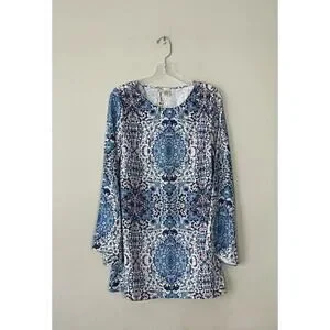 Mimi Chica Size Small Long Bell Sleeve Dress Print Open Back Boho Fairy Festival