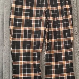 Almost Famous Plaid Pants - Black, Brown, and Orange
