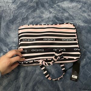 Bebe Black and Pink Logo Laptop Bag