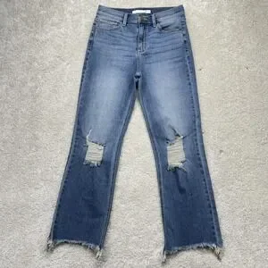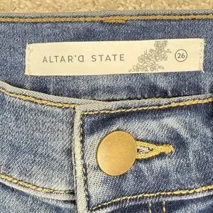 Altar'd State Jeans Womens 26 Blue High Rise Distressed Straight Raw Hem Denim