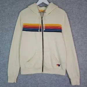 Aviator Nation 5 Stripe Zip Hoodie in Vintage White Medium