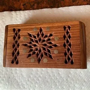 Vintage jewelry box, gold accents. Small Walnut box Wooden box Trinket box Small box Carved box Handmade box Decorated box Home decor Rustic decor Gift.