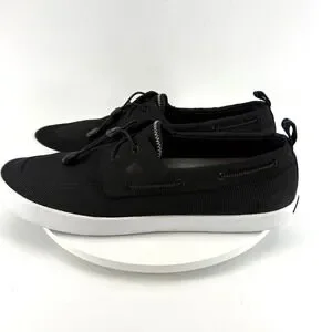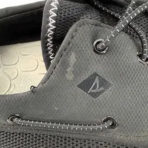 Sperry Deck Men's Size 14 Black Mesh Boat Shoes Sneakers Bungee Laces