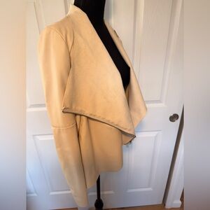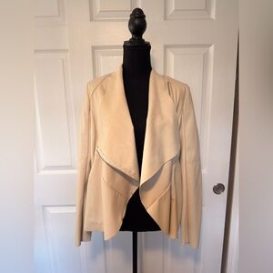 Chic cream blazer with a draped front. Perfect for layering. Adds elegance to any outfit.