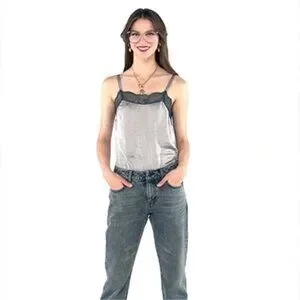 Stylish chemise with black lace trim. Comfortable and elegant design.
