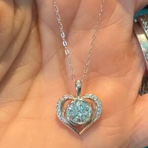 Over 1 carat bezel set Moissanite heart necklace set in 925 sterling silver. Great anniversary, Valentine’s Day, or Mother’s Day gift.