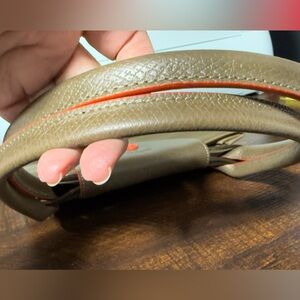 Color is like an army green and orange trim.