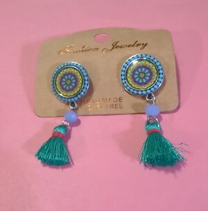Teal & Purple Tassel Dangle Earrings New With Tag Fashion Jewelry
