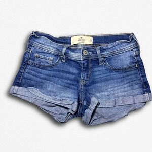 Hollister Short-Short Women 26 Blue Excellent Low Rise Cuffed Denim Jean Shorts