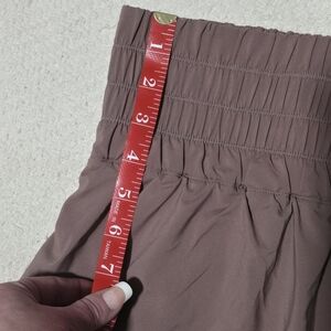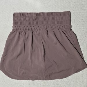 Lightweight Nike Dri-FIT athletic skort in a soft mauve tone. Features a wide smocked elastic waistband for a comfortable, flattering fit and built-in shorts underneath for coverage and support. Breathable performance fabric, great for tennis, golf, walking, workouts, or everyday athleisure.