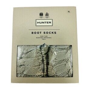 1 Pair Hunter Tall Boot Cable Knit Socks Greige X-Large