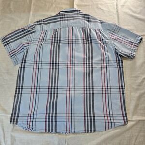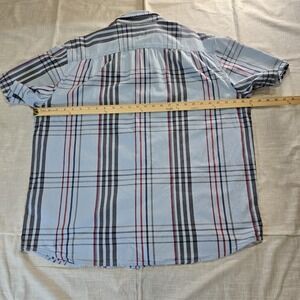 Carhartt Men's Loose Fit Short Sleeve Button Down Plaid Shirt. Size is an X-Large. The colors are: black, gray, white plaid pattern. Button down closure, collard neck, two front pockets with button closure. This is machine wash, 100% cotton (see pictures for measurements). This is in nice pre-owned condition.