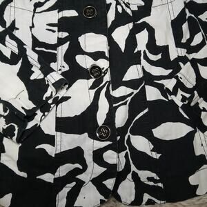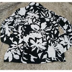 Analogy Black White Floral Print Button Front Jacket Women’s M Cotton Artsy