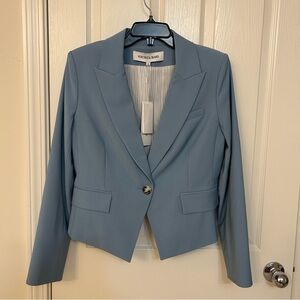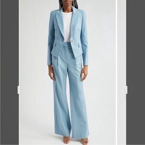 New with tag. The brand's signature jacket comes through in a seasonless stretch wool fabrication and a pretty powder-blue hue.