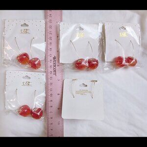 New in Package -- U PICK! 2 Inch Light Red Maraschino Cherry Dangle Earrings, or Dark Red Cherry Dangle Earrings, or conventional Cherry Earrings... for the Dangles, remove the cherries and put them in for a super cute addition to your look! Conventional cherry earrings (in the middle) have ear hooks.