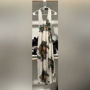Chic maxi skirt with tropical leaf and flower design. Ideal for a stylish getaway.