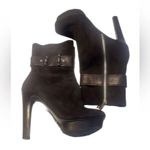 Michael Kors Trendy Silver grommets Black suede stacked Heeled Ankle Boots 38.5