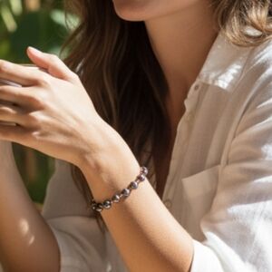 Cultured pearl bracelet; peacock blue pearls