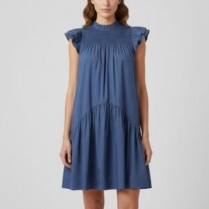 Sea New York Marlene Tunic Mini Dress Smocked Ruffle Blue Cotton Blend. Excellent used condition with no flaws. Size Small.