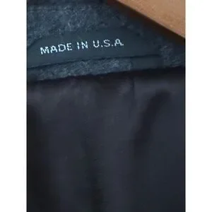 Keywords: Vintage Wool Coat, Charcoal Grey Overcoat, Mens Winter Jacket, Pea Coat, Double Breasted, Made in USA, Heavyweight Wool, Dark Academia, Classic Menswear, Retro Style, Winter Outerwear, Minimalist, Preppy, Formal Coat