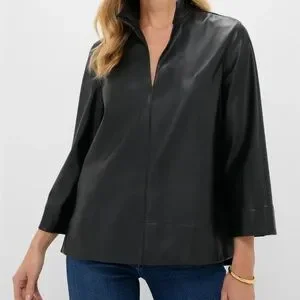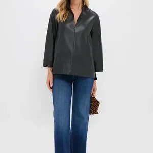 The Margot Blouse is one of our favorite silhouettes, and is now updated in a soft faux leather for a chic look. The sleek stand collar creates a classic, sophisticated look but also pairs well with denim for a more casual vibe. We are wearing this top from meetings to date night with a quick change of accessories!