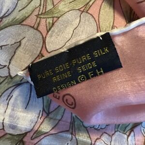 Vintage 100% Silk Scarf E.H. Holland Pink Tulips Floral Print 29x28