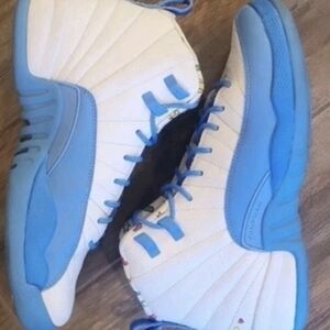 Great Pre-Loved Condition Unisex Jordan 12 Retro Sneakers Emoji White/University Blue GS Youth Big Kid 6.5/W 8