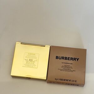 Chic Burberry blush with a sleek gold case. Includes a warm brown shade.
