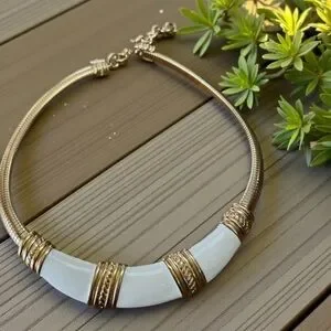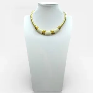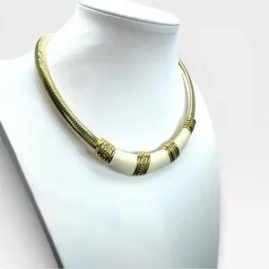 Vintage 1980s MONET Gold and Ivory Enamel Omega Tubogas Collar Necklace
